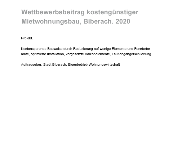 Wettbewerbsbeitrag kostengünstiger Mietwohnungsbau, Biberach